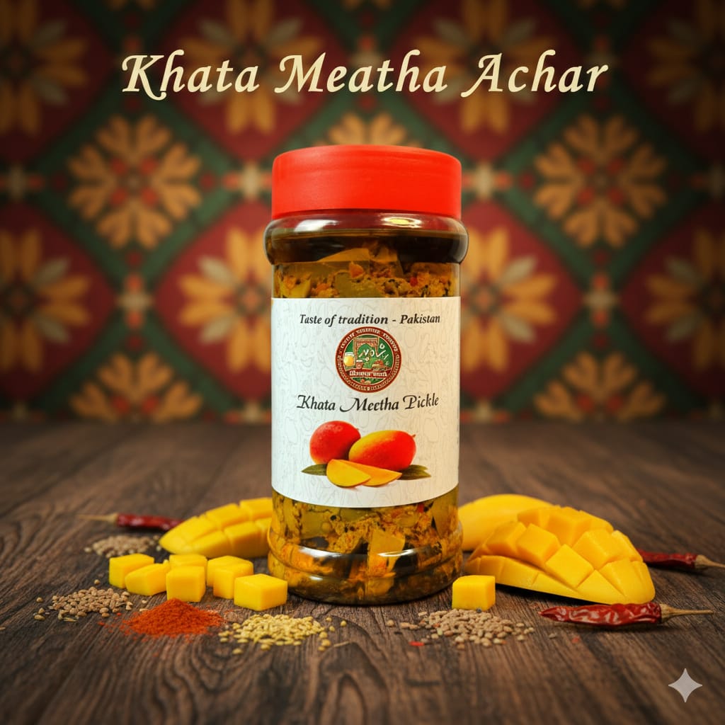 Enjoy the perfect blend of sweet and tangy taste with our Khata Meetha Pickle, made from fresh fruits and natural spices. Balanced, flavorful, and full of homemade goodness, it’s perfect for adding a unique taste to your everyday meals. Free from preservatives and artificial colors, it brings authentic flavor and natural benefits to your table.